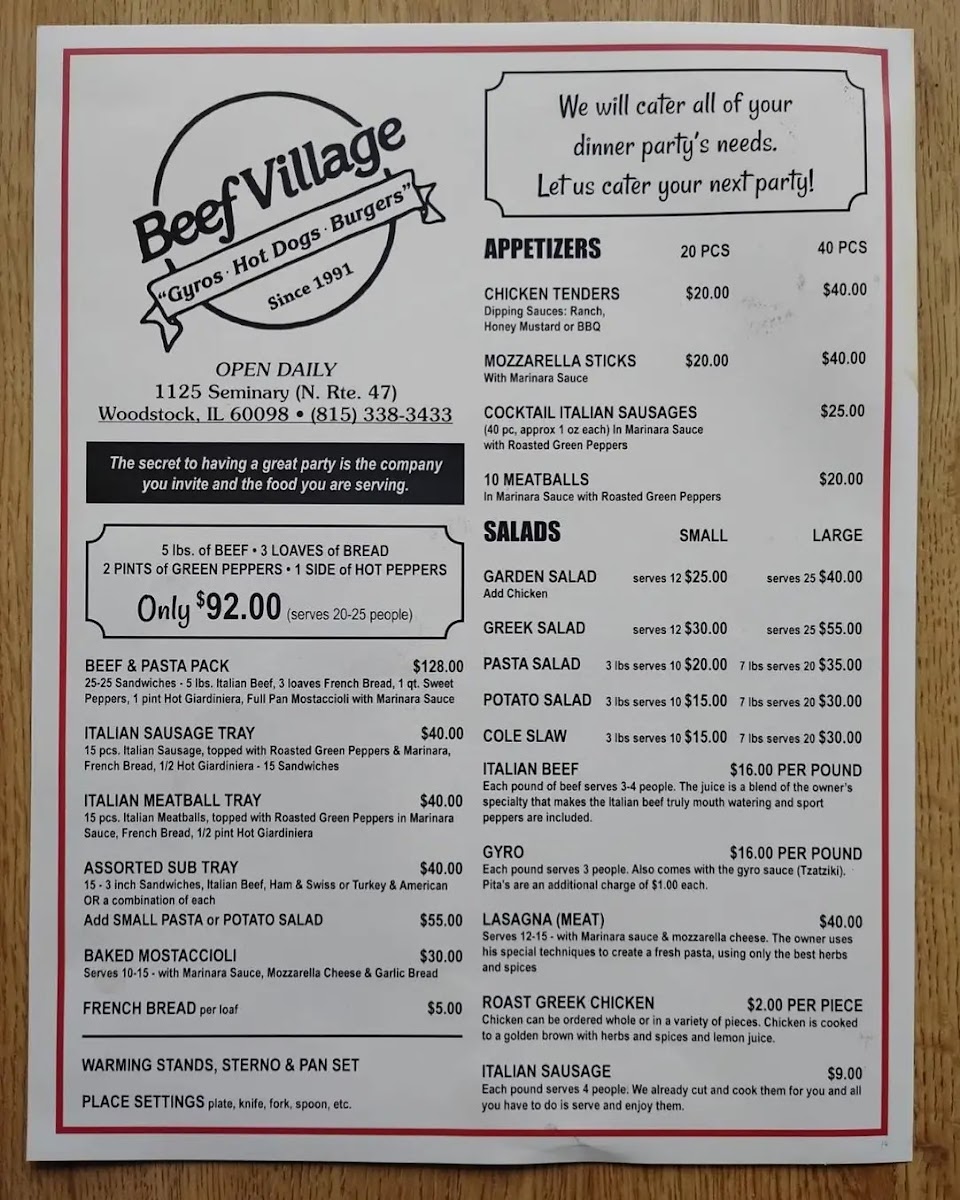 If you're craving a delicious meal in Woodstock, look no further than Beef Village Menu. Located at 1125 N Seminary Ave, this place is a hidden gem offering a variety of mouth-watering options. From tender cuts of beef to savory sides, each dish is prepared with care to give you a hearty and satisfying experience. Whether you're in the mood for a classic steak or something a little more adventurous, their menu has something for everyone. The casual atmosphere and friendly service make it the perfect spot for a relaxed meal with friends or family. It's not just a meal, it's an experience - one you’ll want to return to time and time again.